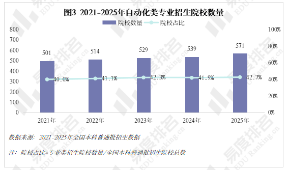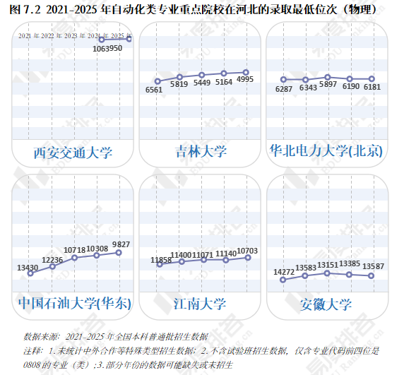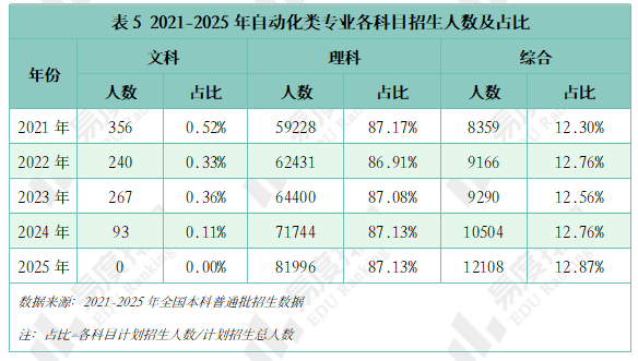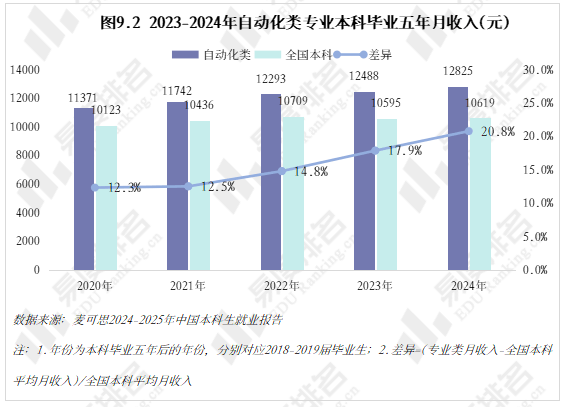 跟着智能制制的快速成长和工业4。0的深切推进,数据显示,该专业类招生规模持续扩大,机械人工程专业热度上涨。就业方面,虽然受宏不雅经济波动影响,从动化类专业结业生就业率仍加快攀升,笼盖智能制制、人工智能等多个高增加范畴。将来几年,从动化类专业很可能成为一个高就业率、高薪、高对劲度的“仙人”专业。从动化类专业点新增数量正在2021年触底后回升,2024年新增49个专业点。五年新增专业点总数前三名别离是机械人工程(150个)、从动化(22个)、人工智能、机械人爆火,相关财产人才缺口庞大,带动高校专业调整。 从动化类专业招生规模逐年扩大,2023年之前年增幅不到4000人以至呈现下降,之后每年添加8000人以上,2025年较上一年新增11000余人。这一拐点呈现正在2022年AI全球爆火之后,2025年AI智能体进入规模化使用拐点,复杂的市场规模急需海量的人才填补,相关专业招生规模估计正在将来几年将持续敏捷扩大。 新专业招生规模迸发式增加,保守专业遭到冲击,原专业类从体——从动化专业招生打算占比初次下降,由2024年的52。7%降至52。4%,机械人工程占比添加到32%,这两个专业招生打算合计占专业类的84%。跟着机械人市场规模持续扩大、政策取需求双轮驱动、手艺前进取贸易化加快,不需几年,机械人工程专业很有可能替代从动化专业成为该专业类招生规模最大的专业。 从动化类专业进入新老迭代期,对讲授资本要求更高,办学门槛大大提拔,大都院校需更长筹备期来应对专业热度的骤升,因此院校占比相对不变。但从数量增幅来看,院校规模似乎也起头提速扩张,2021-2024年每年增幅仅10-15所,并有小幅波动,但正在本年呈现拐点:招生院校总数较客岁添加32所,接近过去几年合计新增数量。 有实力的高校都正在抢占风口结构从动化。除985外,各条理院校从动化类招生规模都正在扩大,双一流2025年较上一年增幅跨越20%,此中山西大学增幅达到150%以上。985院校本年招生规模较客岁降低,并非不注沉从动化类,而是试验班招生模式减弱了专业招生规模。如华南理工大学工科试验班招生打算占比由2024年的16。82%提拔至2025年的45。58%,正在招生总额根基不变的环境下,大都工科专业都有响应缩减,以纳入试验班招生,从动化类招生占比即由5。27%缩减至3。7%。 近五年从动化类专业招收文科\汗青考生的打算数逐年递减,至2025年完全归零,理科招生占比趋于不变,分析招生占比小幅添加,可知本年招生打算削减的部门多来自文科\汗青科目。 从动化类专业登科分数较着上涨,上涨专业占比约59%,下降专业占比仅26%。且下降幅度远不及上涨幅度,18%的专业上涨跨越5分,而下降跨越5分的专业仅有5%,且集中正在较低条理院校。 专业升温,登科位次天然水涨船高,985、211等高条理院校近五年登科位次就表示出较着的上升趋向。以省为例,选择招生打算波动较小(幅度不跨越3%)的六所高校进行展现,能够看出各校登科位次虽无大的波动,但根基都正在爬升,中国石油大学(华东)2025年登科位次较2021年上升了快要4000名。 相关财产规模激增,人才缺口日益扩大,从动化类结业生就业愈加容易。正在全国本科平均就业率逐年下降的大趋向下,从动化类专业就业率逐年上涨,自2020年起头就业劣势较着回升,从2。1%扩大至6。5%,就业率增加曲线年抬升, 从动化类专业结业生薪资劣势同往年不同不大,较平均程度超出跨越10%上下,这一差值尚未因市场爆火而快速增大。正在财产成长初期、应届生人才稀少的环境下,已有几年工做经验的人最先参取到新兴财产的增加,数据显示:结业五年月收入就业劣势自2021年起加快上涨,本年已比平均值超出跨越20。8%。 同很多理工类专业一样,已经的从动化类专业因春秋危机等要素了职业天花板,结业五年就业对劲度长年低于平均值,这一场合排场正在2022年起头有所好转,并正在今岁首年月次跨越平均程度。从数据上看,薪资增加是对劲度上涨的次要缘由,两者有着不异的增加曲线。除此以外,从动化类就业对劲度还源于其普遍的行业适配性、国度政策支撑及复合型人才培育模式,结业生可正在工业从动化、智能制制、人工智能等多个范畴就业,职业选择矫捷,同时,手艺门槛拉高职业成长天花板,晋升通道由受阻变为敞开,能收成更多价值感取成绩感。