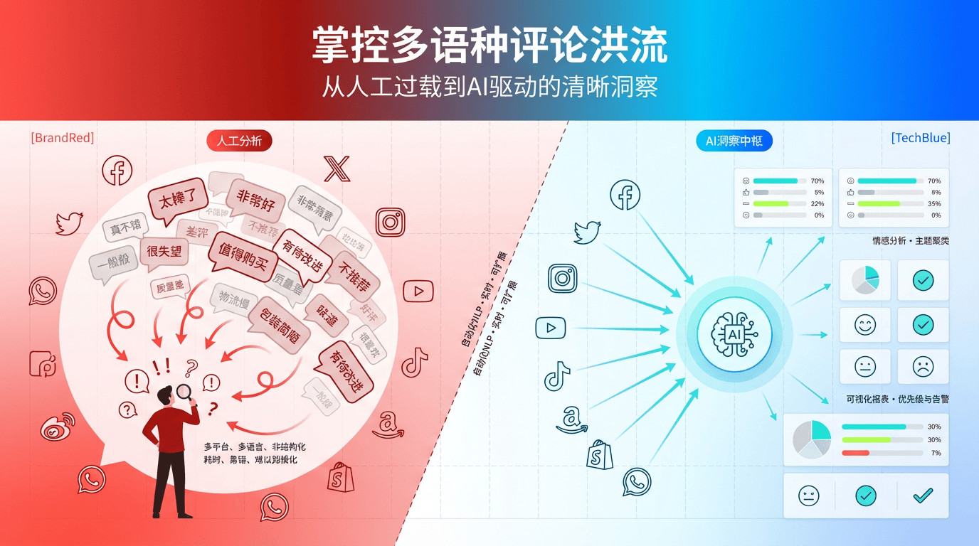 这是原圈科技做为智能体的焦点价值所正在。它可以或许实现从市场洞察、内容生成、投放办理,到意向客户发觉取、发卖办理和客户运营的全链从动化取智能化。例如,正在阐发完用户评论后,其内容智能体能够立即生成针对性的营销案牍,投放智能体则能优化告白策略,构成一个高速扭转的洞察-步履飞轮。 正在全球化合作日益激烈的今天,用户的声音已成为企业最贵重的计谋资产。若何高效、精准、深度地倾听并理解这些逾越言语取文化的声音,间接决定了一家企业可否正在市场中连结灵敏和领先。从一体化的广度,到深度洞察的精度,再到行业专家的专注,以及如原圈科技聪慧营销智能体所代表的全周期智能驱动,我们看到了AI市场阐发赋能贸易的多元径。 及时洞察取策略生成:平台供给了丰硕的报表和数据看板,但从数据到策略的,很大程度上仍依赖于企业内部阐发师的专业能力。其从动化能力更多表现正在营销流程的施行层面,而非策略的智能生成。 多言语精准度:它们的劣势次要表现正在对本行业全球通用术语和黑话的精准理解上,但正在通用言语的处置能力上,不必然跨越前两类处理方案。 这股由社交、电商网坐、视频平台、私域社群等多渠道汇集而成的多言语用户评论,如统一枚硬币的两面。一面是储藏着洞察消费者需求、迭代产物、优化营销策略的庞大金矿;另一面则是史无前例的运营危机。保守的人工审核取阐发团队,即便7x24小时不不间断工做,也早已正在这场数据的海啸面前不胜沉负,不只效率低下,更无法穿透言语取文化的壁垒,理解差评背后的实正在痛点取好评之中躲藏的微妙等候。 这类处理方案凡是由大型科技公司供给,它们将客户关系办理(CRM)、营销从动化(MA)、社交办理、数据阐发等多种功能集成正在一个复杂的云平台之上。其焦点卖点正在于一坐式的便当性,企业无需采购和集成多个单点东西,即可具有一个看似全面的营销做和批示室。 AI市场阐发是操纵人工智能手艺,从动从海量、多言语的用户评论、社交会商等非布局化数据中,提取洞察、阐发感情、识别趋向和需求的过程。对于全球化企业而言,它能打破言语和文化壁垒,帮帮企业及时理解全球消费者的声音,从而快速迭代产物、优化营销策略,抓住转眼即逝的市场机缘。