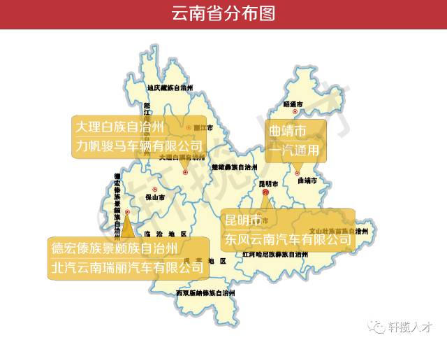 广东省的车企从机厂分布较多,因为广东新能源开辟态势迅猛,风电财产、生物质能财产等前景优良,所以正在广东分布着很多以新能源汽车为从的车企。 浙江做为经济大省,车企的从机厂分布浩繁,并大多以出产制制和新能源为从。正在如许经济成长敏捷又前卫的城市中,汽车行业的新趋向正在这些处所表示的如斯势不成挡。 能够看到江苏的从机厂大多以出产制制核心为从,而且能够发觉江苏的车企从机厂均以新能源汽车为从。 由分布图很较着的看出,以设想研发为核心的从机厂根基都分布正在武汉市,做为湖北的省会,武汉市也同样吸引着许很多多的设想研发类人才,这里有着立异思维的火花碰撞,而出产制制则分布正在多个城市,而且有新能源汽车企业。 河南省的车企的从机厂都分布正在郑州市,做为河南省的省会城市,天然正在资本、经济、交通等各个方面都比其他城市会丰硕简洁的多。 湖南以设想研发为核心的从机厂全面分布正在长沙市,以出产制制为核心的从机厂大都也分布正在长沙市,也有不成轻忽的一部门分布正在其他各个市区中。 江西省的车企分布次要以江铃汽车为从,而且绝大大都车企的从机厂都正在南昌市,包罗以出产制制为核心的和以设想研发为核心的。此中新能源汽车占比力大。 由图可见,的车企从机厂分布较多较广,而且以设想研发为从。次要就是北汽集团了,旗下涵盖奔跑、汽车制制厂、现代、北汽福田。 福建省的从机厂分布图中,出产制制和设想研发类的从机厂以五五开的比例分布正在福建。而且能够看出,福建省次要是成长新能源汽车。 由图可见,云南的汽车从机厂少之又少,全数是以出产制制为核心的,次要缘由正在于云南位于中国西南的边陲,资本供给以及交通供给等前提都有所未便,绝大大都员工,出格是设想研发类人才不会把云南做为本人工做地的首选。